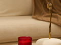 Свечи из натурального кокосового воска и парафина с фитилем из древесины вишни. Кокосовый воск производит наименьшее количество сажи относительно других типов воска и считается лучшим для изготовления свечей. А фитиль из вишневого дерева горит с приятным потрескиванием древесины, создавая неповторимую атмосферу.