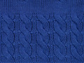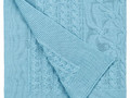 Модель: однотонный плед с фактурной вязкой, которая позволяет сделать его воздушным и объемным. Чередуя различные типы петель на гладком полотне, можно вывязать любую графику — логотип, текст, товарный знак.