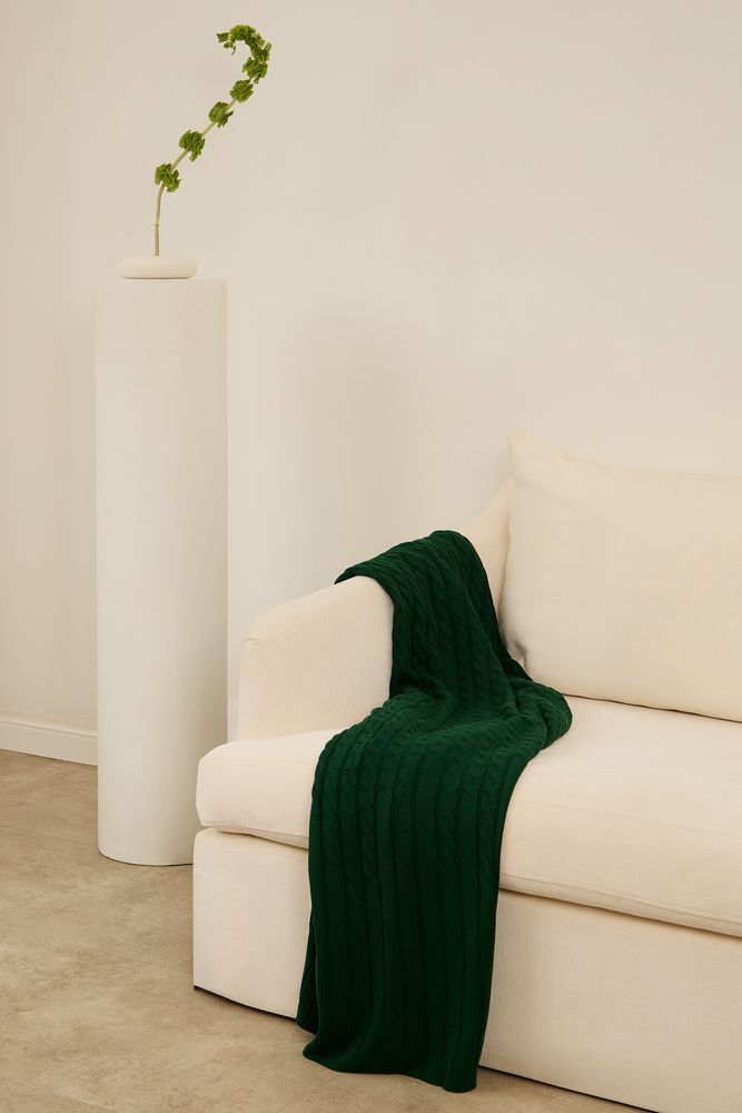 Уютный плед со слегка обновленным классическим узором: фактурные косы разной длины плавно перетекают в ненавязчивые полосы и обратно. Tressa притягивает внимание и напоминает о простой красоте привычных образов. Добавит спокойного шика в современный интерьер спальни или гостиной, окутает заботой и теплом.