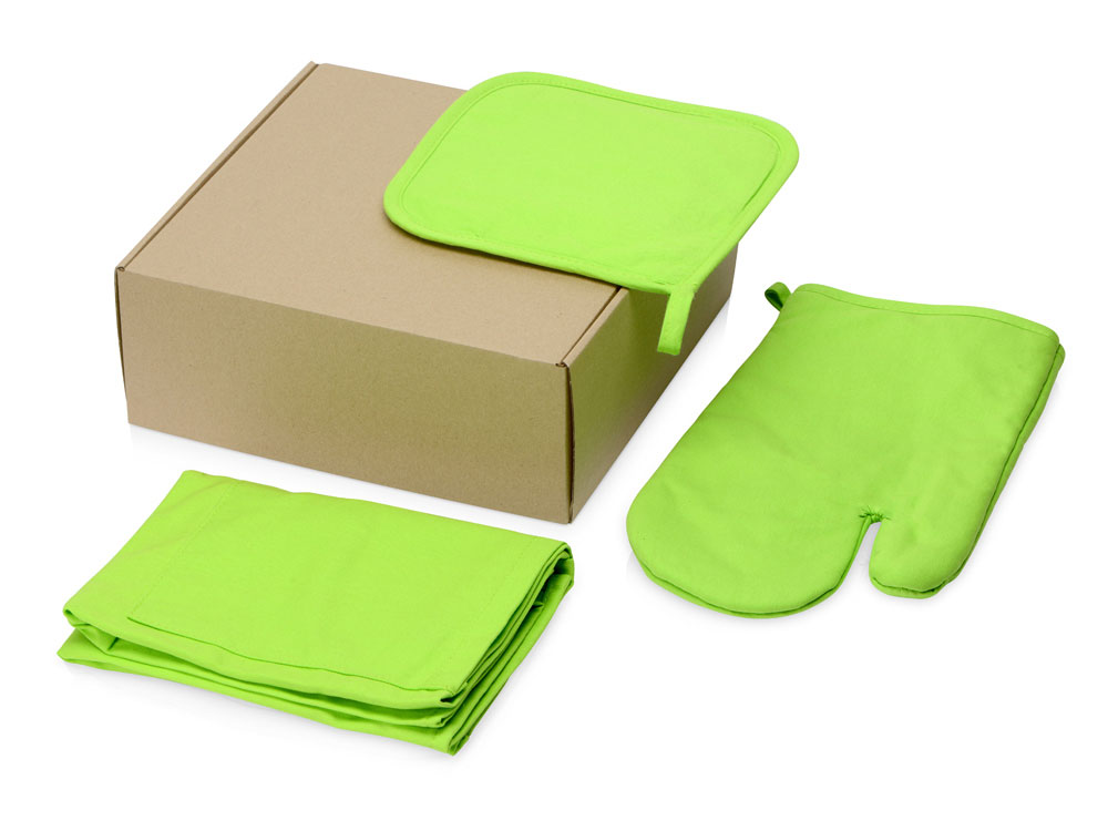 Подарочный набор с фартуком, прихваткой, зеленое яблоко