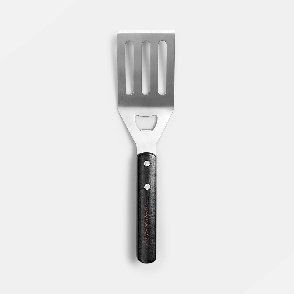 Продуманная конструкция инструментов обеспечивает комфортное использование и полный контроль над процессом готовки. Деревянные ручки не нагреваются, а еще на них хорошо ложится гравировка. Также прочный пищевой металл легко моется и не деформируется при работе с горячими продуктами и поверхностями.
