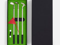 В комплекте: 3 клюшки-ручки со сменным стержнем с синими, черными и красными чернилами, 2 мячика для гольфа, флажок и подарочная коробка.Не является детской игрушкой. Не предназначено для детей!
