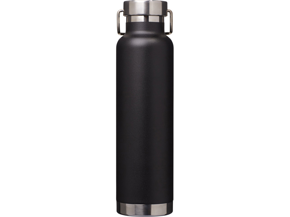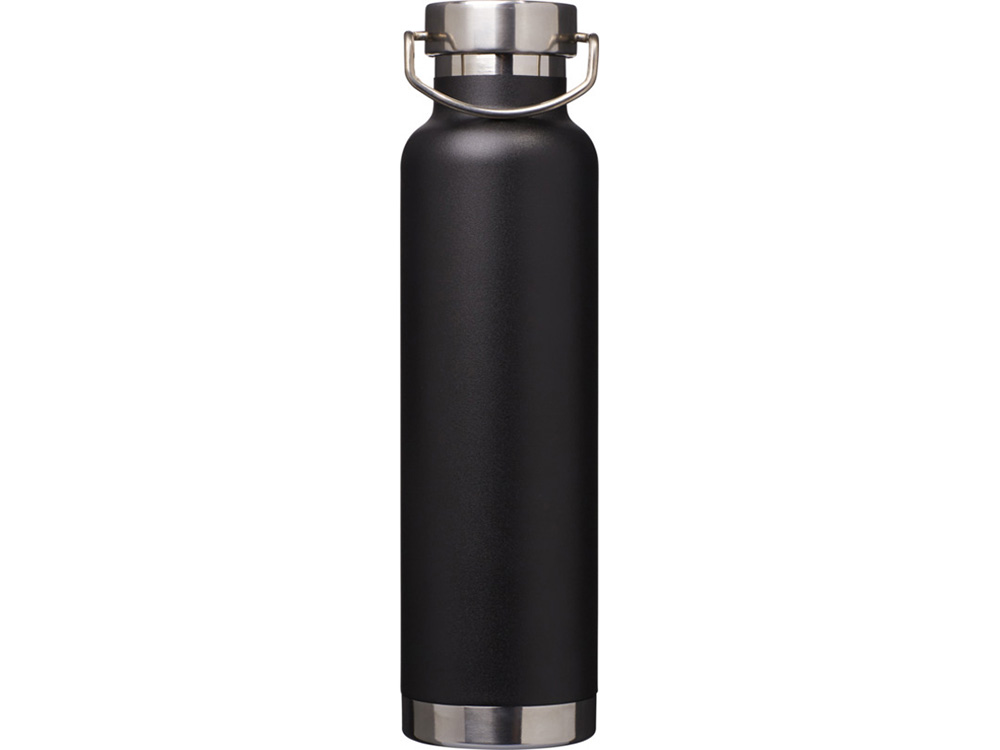 Бутылка для воды с вакуумной изоляцией Thor объемом 650 мл из переработанной нержавеющей стали, сертифицированной по стандарту RCS - сплошной черный
