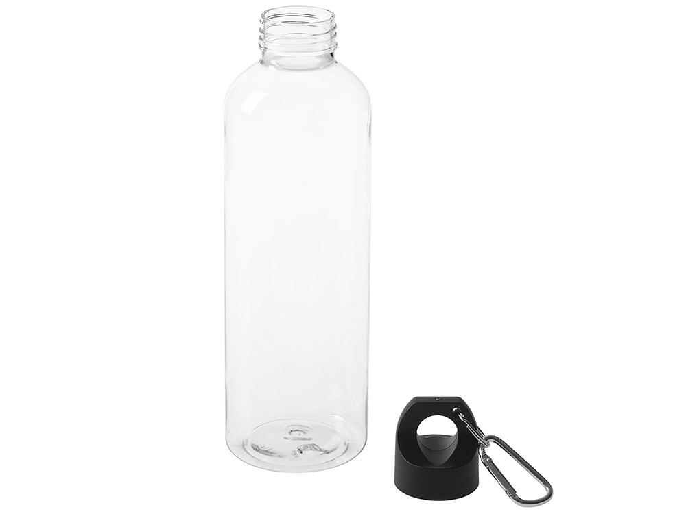 Бутылка с корпусом из RPET. Крышка с карабином. Объём: 800 мл. Трафаретная печать круговая (1 цвет (цветные изделия)) на данный товар осуществляется бесплатно. Оплачивается только настройка оборудования в размере 4500 рублей на весь тираж.