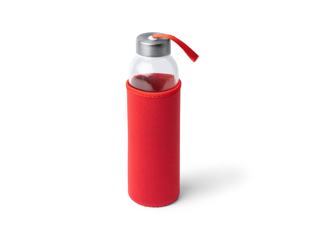 Бутылка стеклянная CAMU в чехле из неопрена, 500 мл, прозрачный/красный