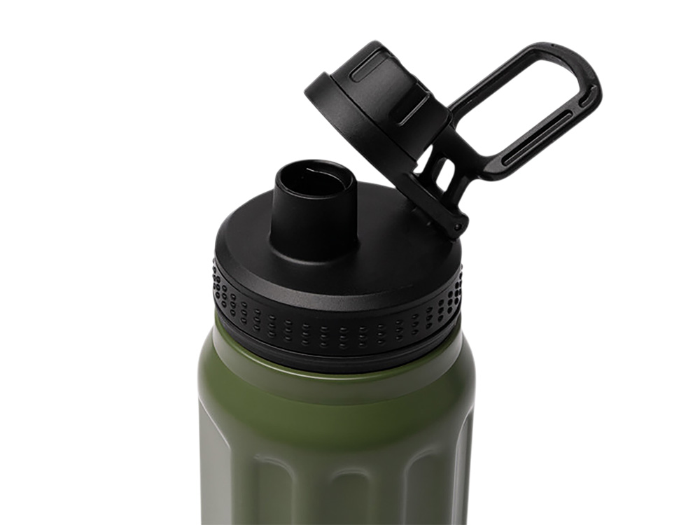 Удобство переноски: выдвижная ручка позволяет легко фиксировать бутылку на пальцах или крепить к рюкзаку