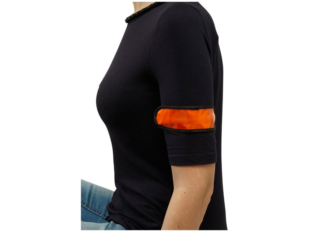 Диодный браслет Olymp. Регулируемый эластичный диодный браслет для видимости на улице с кнопкой для переключения режимов мигания, быстрого мигания, обычного света или выключения. Батарейки в комплекте. ПВХ.
