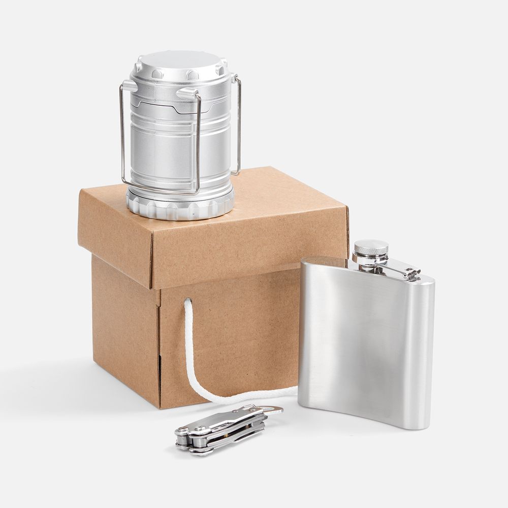 Практичный сет для похода в лаконичном и стильном исполнении: мультитул-плоскогубцы, кемпинговый фонарь с дальностью луча 20 метров и классическая фляжка. Все, что нужно для активного отдыха, всегда будет под рукой с этим набором. Емкость фляжки 180 мл.