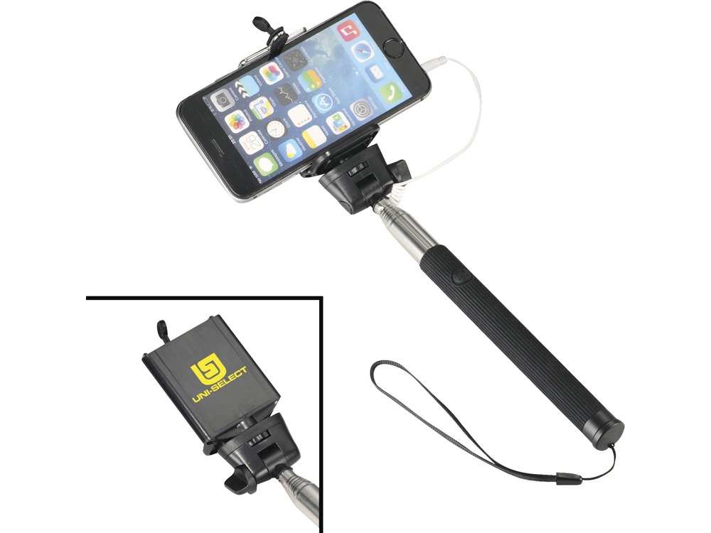 Проводной монопод. Сделайте идеальный селфи с этим выдвижным моноподом (до 90 см). Не требует батареи или использования приложения. Просто подключите 3,5 мм аудио разъем в телефон (совместим только с телефонами, у которых есть разъем 3.5 мм) и нажмите на кнопку, расположенную на ручке. Регулируемый держатель. Силикон, сталь и ПВХ. Гравировка (оптоволоконный лазер) (Без чернения) на данный товар осуществляется бесплатно. Оплачивается только настройка оборудования в размере 2700 рублей на весь тираж.