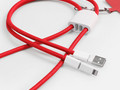 Кабель в прочной нейлоновой оплетке не заламывается и не путается, а закрепленные в гнездах держателя адаптеры с разъемами USB-A и Apple Lightning выручат в любой ситуации.