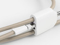 Кабель в прочной нейлоновой оплетке не заламывается и не путается, а закрепленные в гнездах держателя адаптеры с разъемами USB-A и Apple Lightning выручат в любой ситуации.