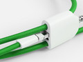 Кабель в прочной нейлоновой оплетке не заламывается и не путается, а закрепленные в гнездах держателя адаптеры с разъемами USB-A и Apple Lightning выручат в любой ситуации.