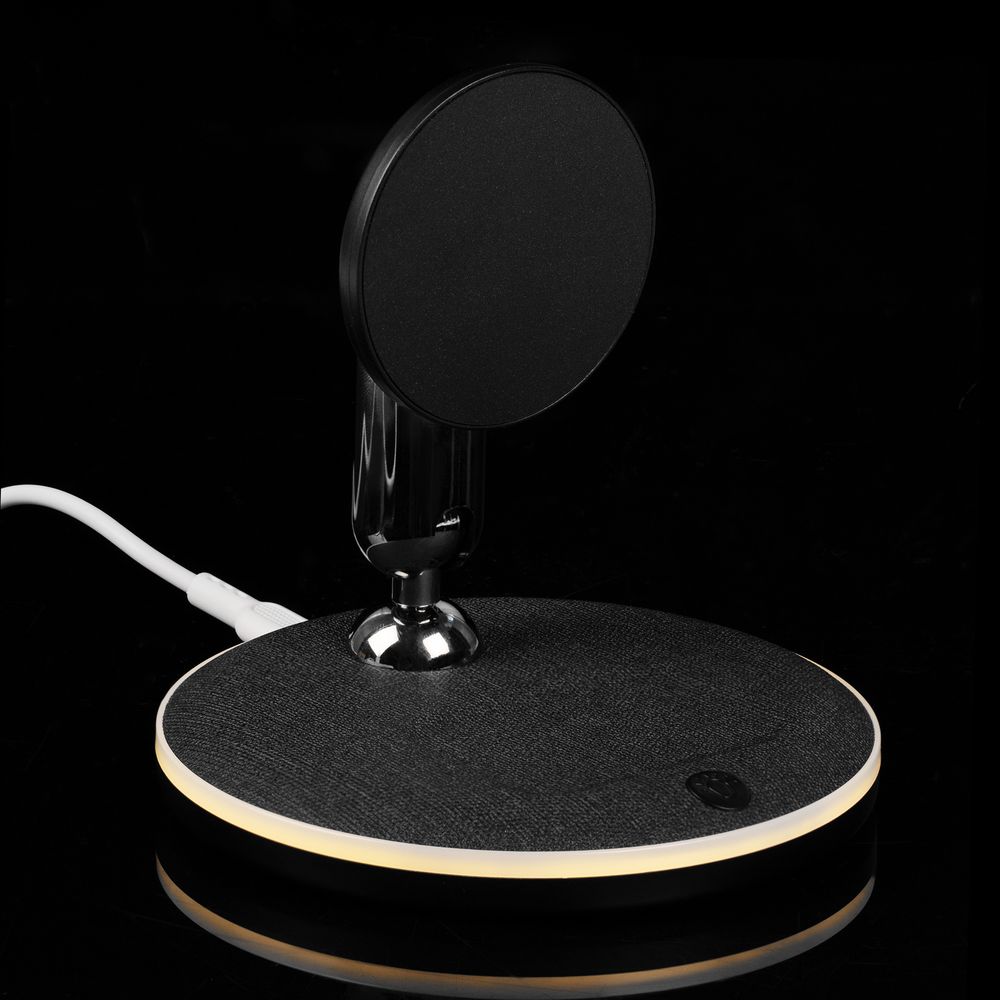 Модели iPhone 12–15 c магнитами MagSafe могут заряжаться в наклонном положении. Крупные смартфоны без магнитного удержания можно разместить вертикально.