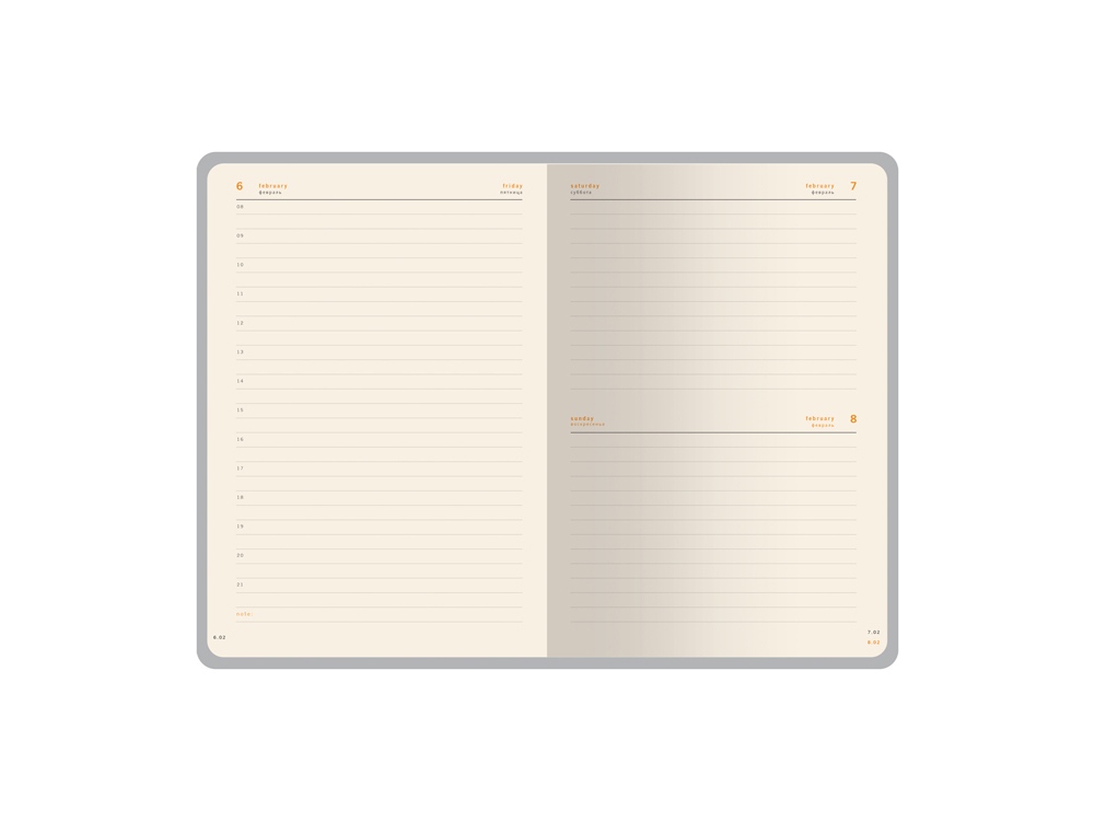 Фактурная обложка придает ему элегантный вид, а яркий цветной срез добавляет оригинальности. Двойное ляссе, выполненное в контрастных цветах, обеспечивает удобную навигацию. Для дополнительного удобства предусмотрен держатель для ручки. Внутренний блок выполнен из бежевой бумаги плотностью 70 г/кв.м и содержит страницу для персональных данных, 17 страниц справочной информации и датированные страницы с почасовой разметкой. Ежедневник «Boston» – отличный выбор для тех, кто ценит качество и продуманный дизайн. Тиснение (Блинт) на данный товар осуществляется бесплатно. Оплачивается только настройка оборудования в размере 8700 рублей на весь тираж.