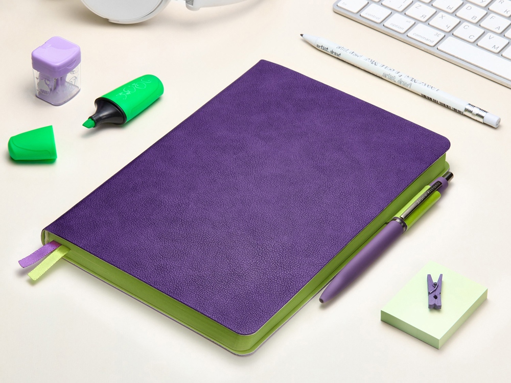 Ежедневник А5 датированный "Boston" 2026, фиолетовый с салатовым обрезом