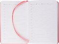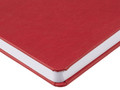 Ежедневник с твердой обложкой, выполнен из материала Latte, красный РР, дополнен ляссе в цвет обложки.