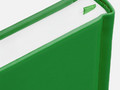 Ежедневник с твердой обложкой без поролона, выполнен из материала Soft Touch Ultra, зеленый FF, дополнен резинкой шириной 1 см, петлей-резинкой для ручки, капталом и ляссе ярко-зеленого цвета.