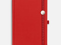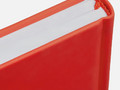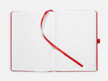 Ежедневник с твердой обложкой без поролона, выполнен из материала Soft Touch Ultra, красный РР, дополнен резинкой шириной 1 см, петлей-резинкой для ручки, капталом и ляссе красного цвета.