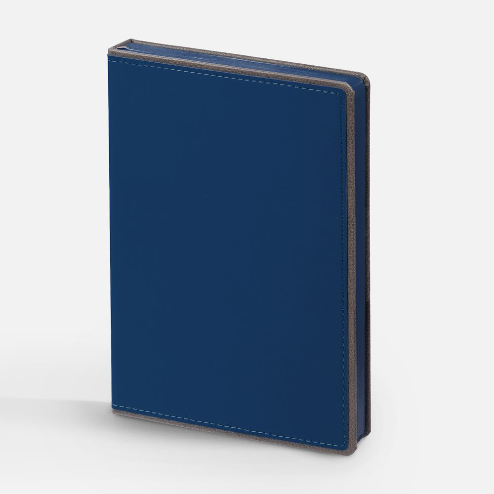 Ежедневник с твердой обложкой, выполнен из материалов Soft Touch Ultra, синий НН и La Fite, серый СС. Ляссе темно-серого цвета.