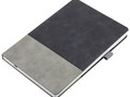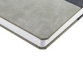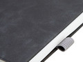 Ежедневник с твердой обложкой, без поролона, со сшивкой материалов Nubuck Touch, серый СС, и Nubuck Touch черный АА, дополнен двойным ляссе и петлей-резинкой для ручки.