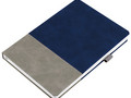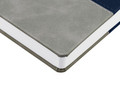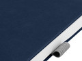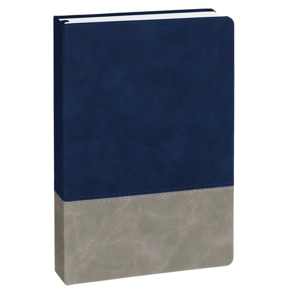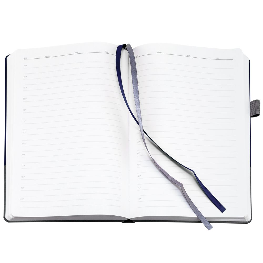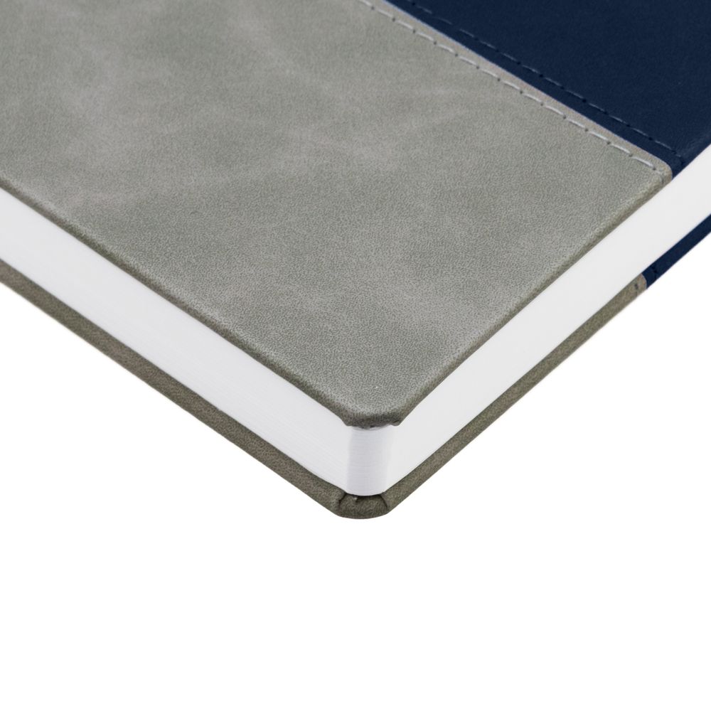 Ежедневник с твердой обложкой, без поролона, со сшивкой материалов Nubuck Touch, серый СС, и Nubuck Touch, темно-синий ХХ, дополнен двойным ляссе и петлей-резинкой для ручки.