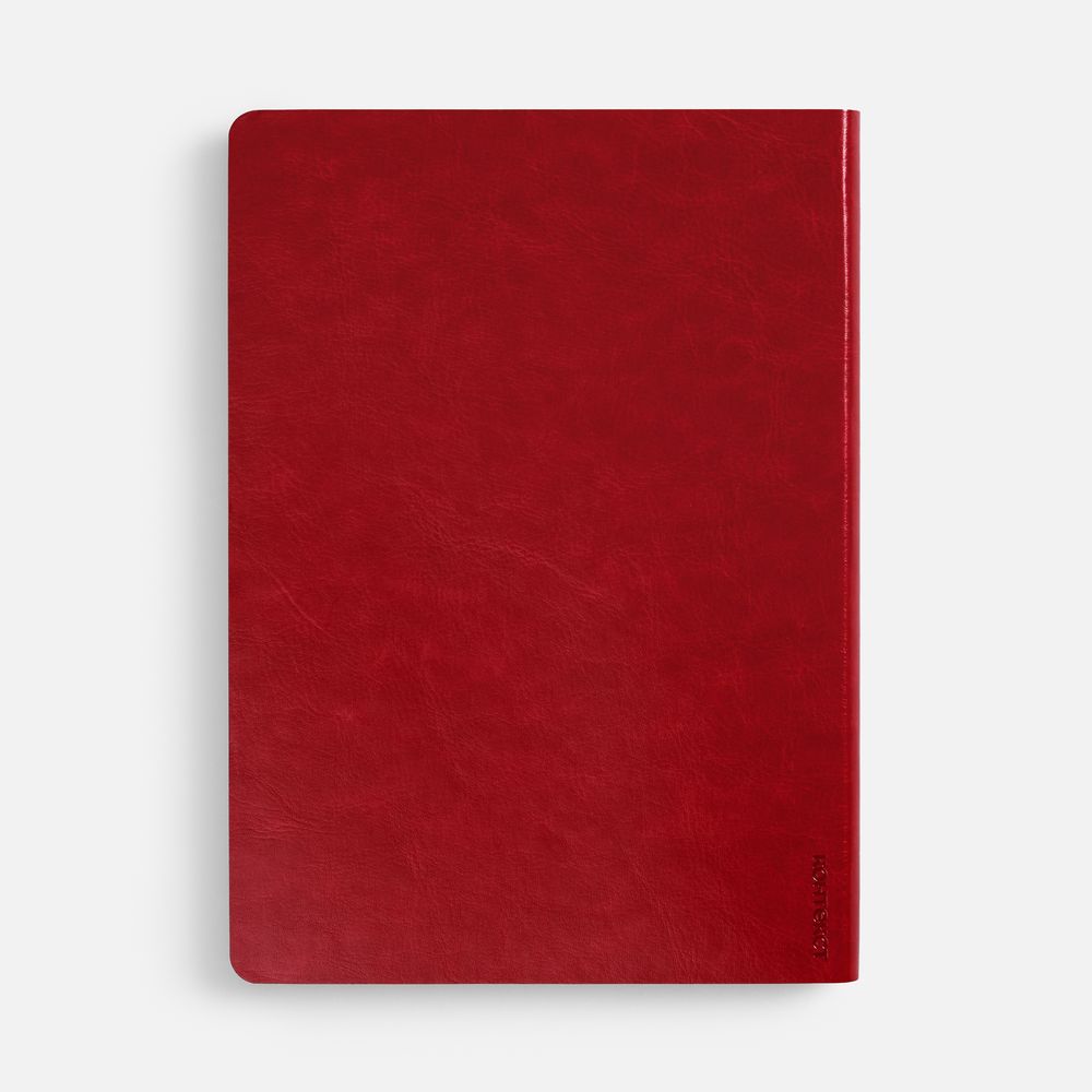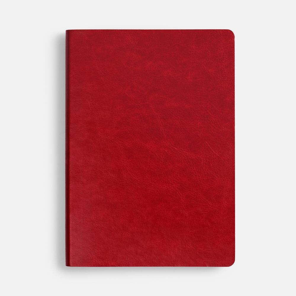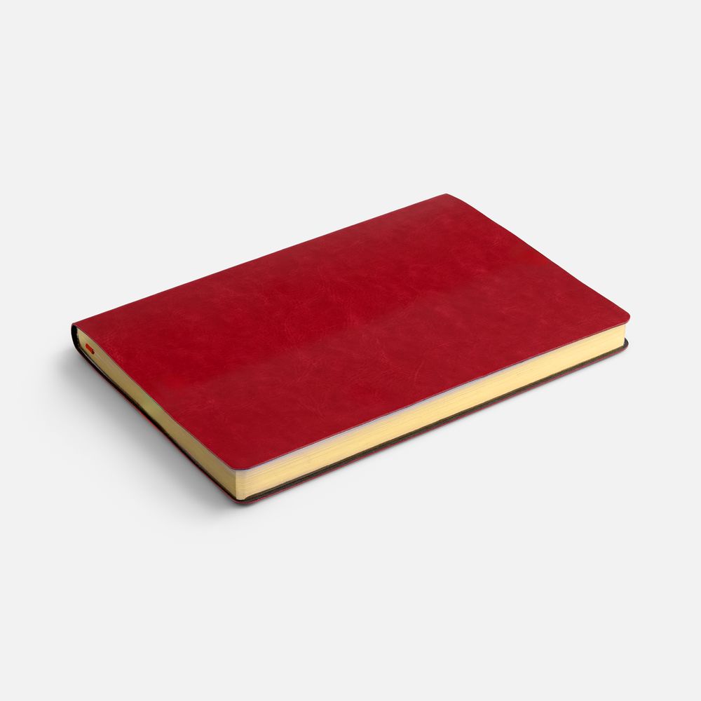 Ежедневник с гибкой обложкой, выполнен из материала Nebraska, красный PP, дополнен ляссе красного цвета.
