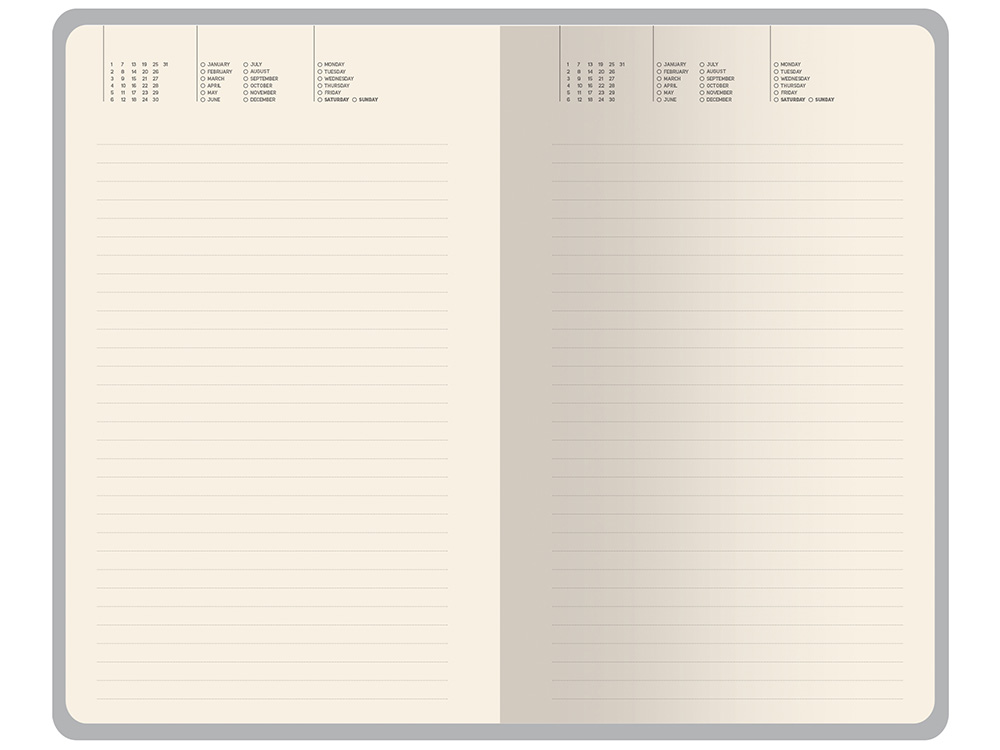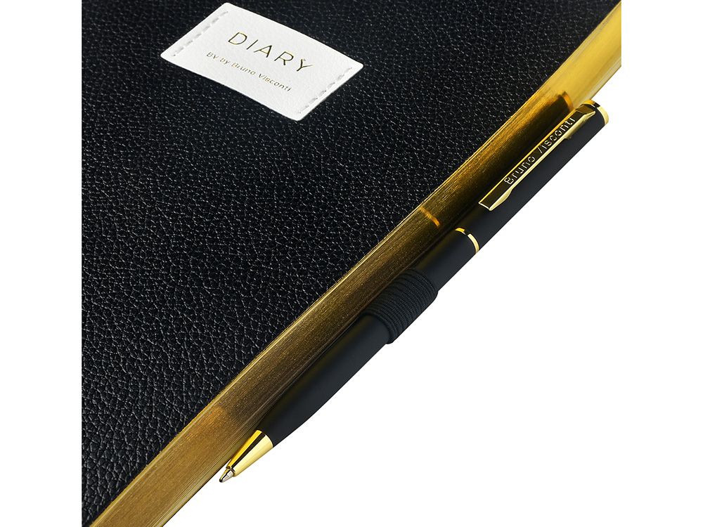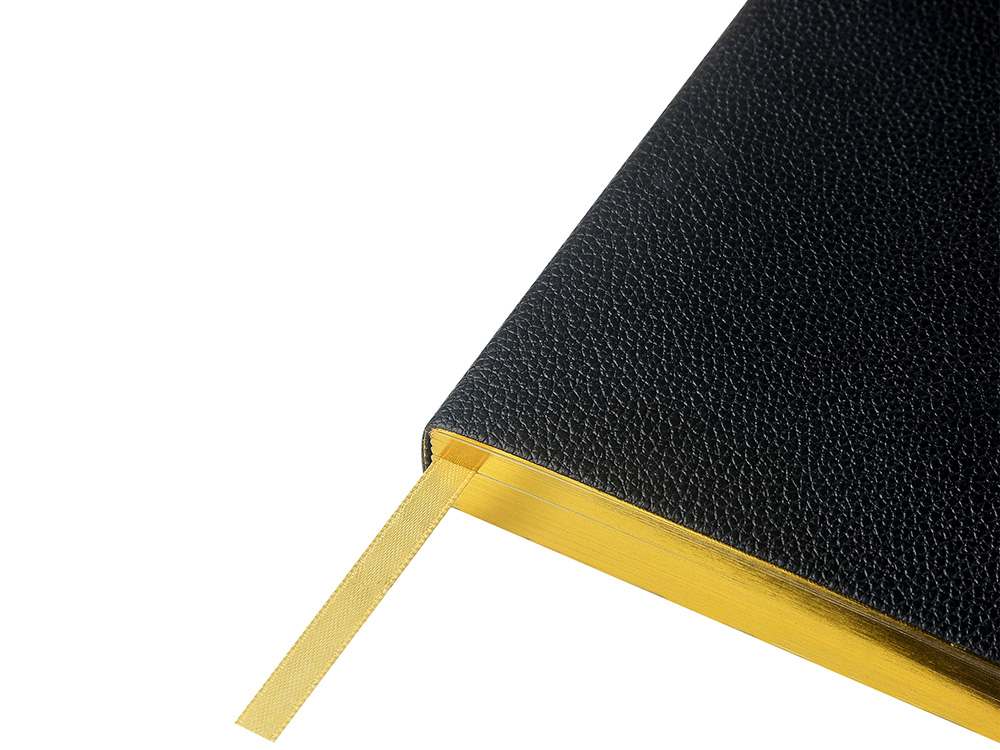 Внутри — недатированный блок формата А5 (125×200 мм) на бежевой бумаге 80 г/м². Книжный переплёт хорошо раскрывается, а скруглённые углы одновременно придают ежедневнику премиальный вид и защищают края при носке. Завершают детали ляссе в цвет обложки и петля для ручки — чтобы всё нужное было под рукой. Тиснение (Блинт) на данный товар осуществляется бесплатно. Оплачивается только настройка оборудования в размере 8700 рублей на весь тираж.