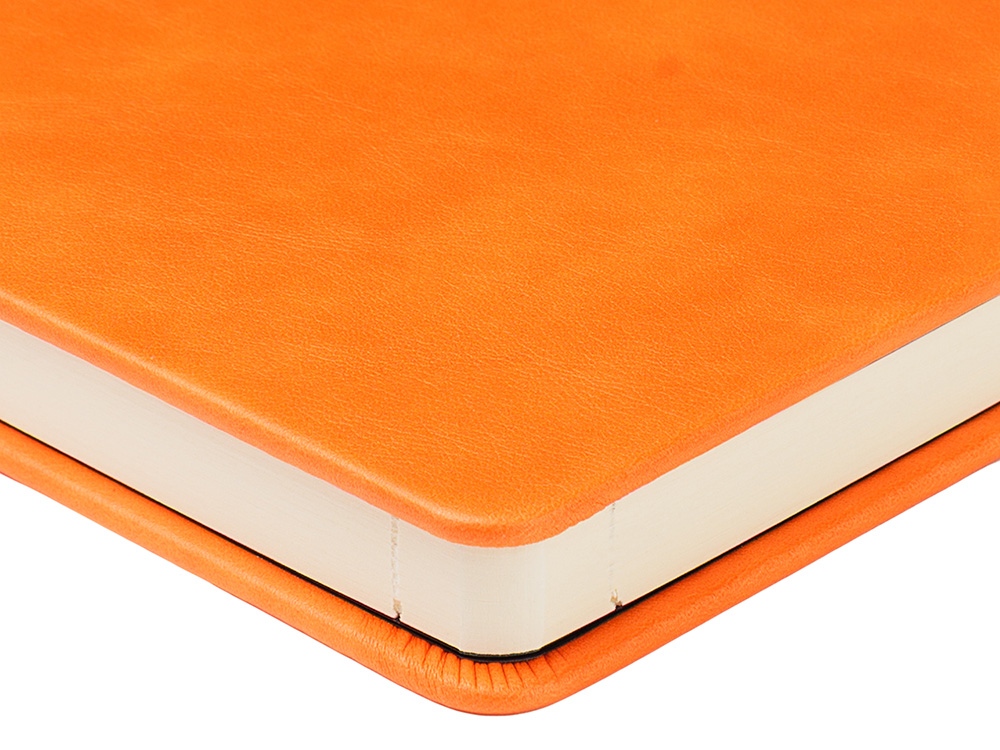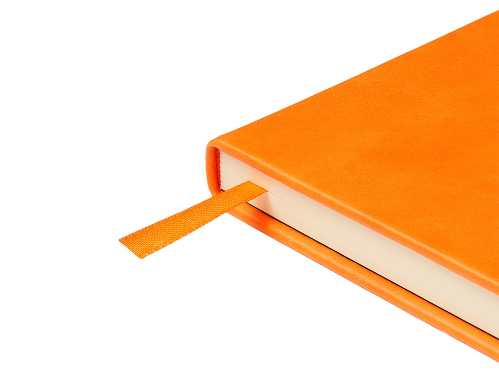 Твердую обложку из высококачественной искусственной кожи дополняет металлический хлястик на магните.  Ляссе в цвет обложки позволяет быстро найти нужную страницу. Блок в 272 страницы произведен из бежевой бумаги плотностью 70 г/кв.м и имеет раздел справочной информации на 19 страницах. Для удобства навигации все углы блока перфорированы, имеют скруглённую форму. Тиснение (Блинт) на данный товар осуществляется бесплатно. Оплачивается только настройка оборудования в размере 6200 рублей на весь тираж.
