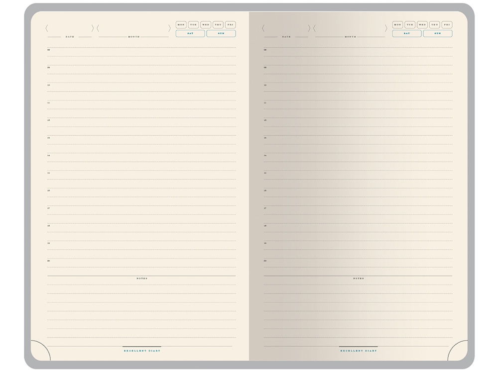 Твердую обложку из высококачественной искусственной кожи дополняет металлический хлястик на магните.  Ляссе в цвет обложки позволяет быстро найти нужную страницу. Блок в 272 страницы произведен из бежевой бумаги плотностью 70 г/кв.м и имеет раздел справочной информации на 19 страницах. Для удобства навигации все углы блока перфорированы, имеют скруглённую форму. Тиснение (Блинт) на данный товар осуществляется бесплатно. Оплачивается только настройка оборудования в размере 6200 рублей на весь тираж.