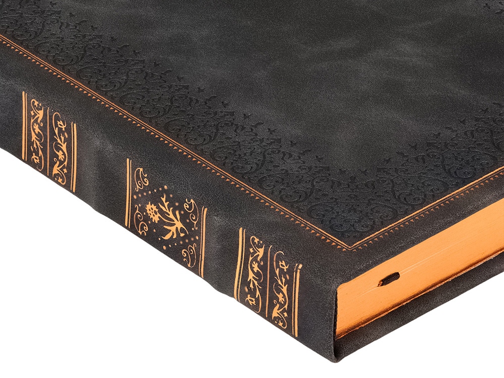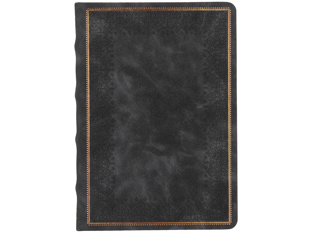 Недатированный ежедневник "Royal" формата А5 с твердой обложкой из искусственной кожи с имитацией нубука украшен художественным бронзовым и блинтовым тиснением. Внутри 256 страниц, выполненных из качественной бежевой бумаги в линейку плотностью 100 г/м². Два шелковых ляссе в цвет обреза блока и обложки облегчают навигацию по записям. Французский корешок дополнительно декорирован изящным бронзовым тиснением в виде виньеток. Скругленные углы обложки и блока подчеркивают стильный дизайн изделия, а блеск бронзового обреза дарит ежедневнику благородный и роскошный внешний вид. Тиснение (Блинт) на данный товар осуществляется бесплатно. Оплачивается только настройка оборудования в размере 8700 рублей на весь тираж.