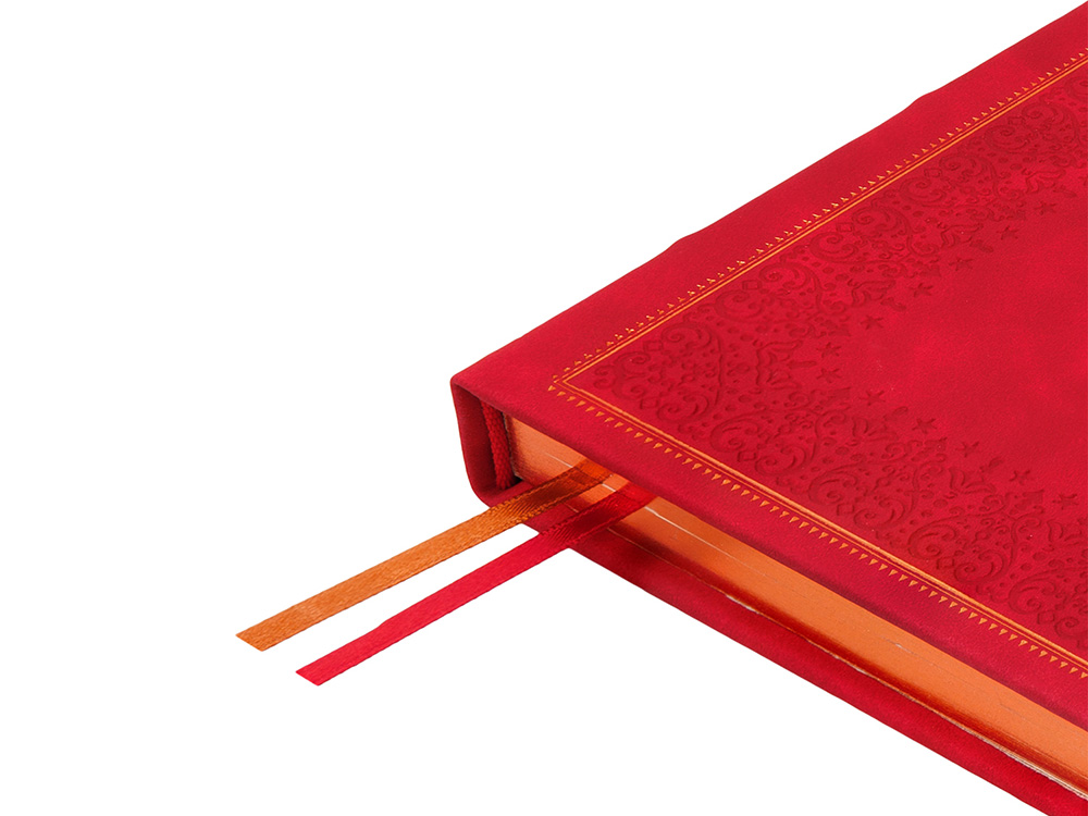 Недатированный ежедневник "Royal" формата А5 с твердой обложкой из искусственной кожи с имитацией нубука украшен художественным бронзовым и блинтовым тиснением. Внутри 256 страниц, выполненных из качественной бежевой бумаги в линейку плотностью 100 г/м². Два шелковых ляссе в цвет обреза блока и обложки облегчают навигацию по записям. Французский корешок дополнительно декорирован изящным бронзовым тиснением в виде виньеток. Скругленные углы обложки и блока подчеркивают стильный дизайн изделия, а блеск бронзового обреза дарит ежедневнику благородный и роскошный внешний вид. Тиснение (Блинт) на данный товар осуществляется бесплатно. Оплачивается только настройка оборудования в размере 8700 рублей на весь тираж.