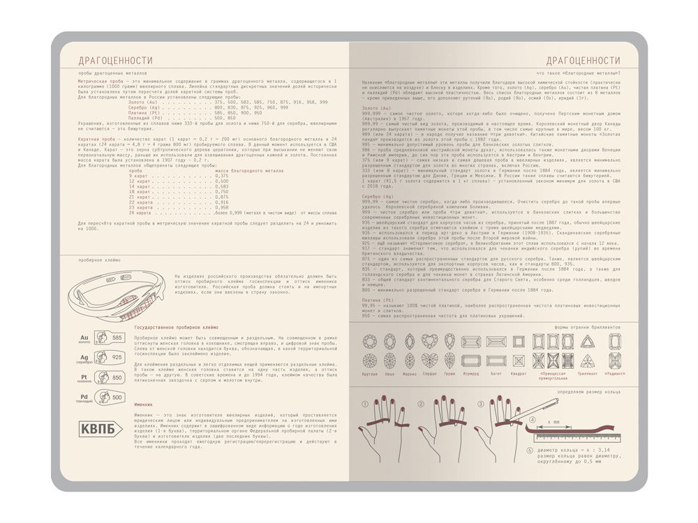 • 10 страниц оригинальной справочной информации (вино и еда, мода, драгоценности, как выбирать подарок, методы борьбы со стрессом). Тиснение (Блинт) на данный товар осуществляется бесплатно. Оплачивается только настройка оборудования в размере 6200 рублей на весь тираж.