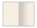 Ежедневник формата А5 имеет внутренний блок из 272 страниц. Блок изготовлен из бежевой бумаги плотностью 70 г/м2 и содержит:
