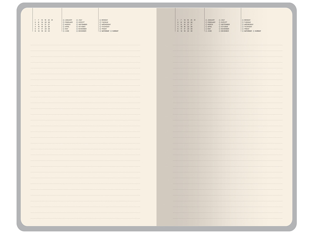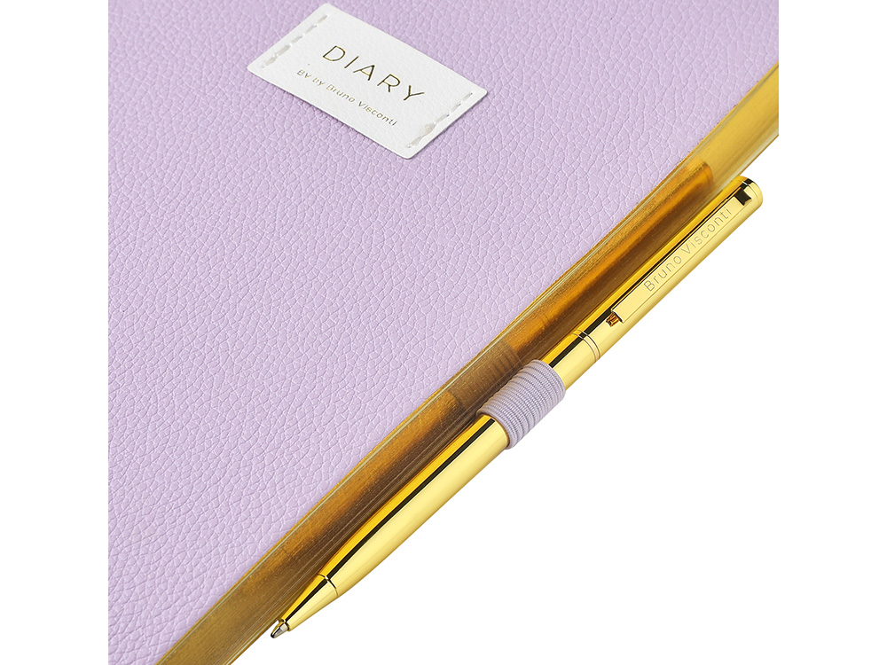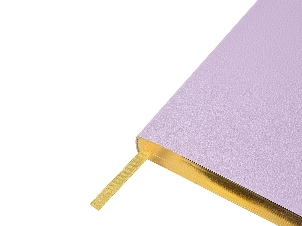 Внутри — недатированный блок формата А5 (125×200 мм) на бежевой бумаге 80 г/м². Книжный переплёт хорошо раскрывается, а скруглённые углы одновременно придают ежедневнику премиальный вид и защищают края при носке. Завершают детали ляссе в цвет обложки и петля для ручки — чтобы всё нужное было под рукой. Тиснение (Блинт) на данный товар осуществляется бесплатно. Оплачивается только настройка оборудования в размере 8700 рублей на весь тираж.