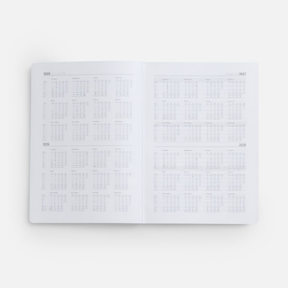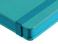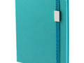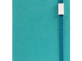 Ежедневник с твердой обложкой, выполнен из материала Latte, цвет морской волны II, обрез бирюзового цвета, дополнен ляссе бирюзового цвета и резинкой с металлическим шильдом.