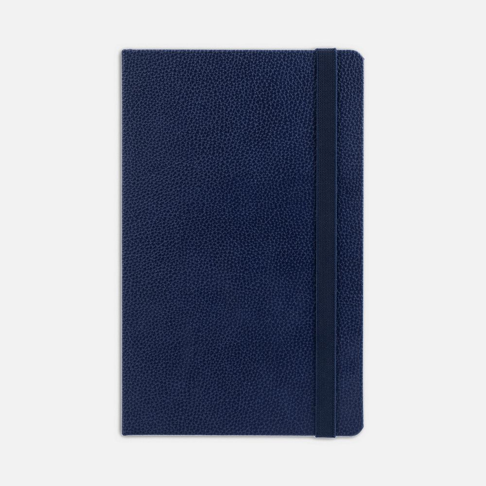 Ежедневник с твердой обложкой, выполнен из материала LaFite, темно-синий ХХ, дополнен резинкой и ляссе в цвет обложки.