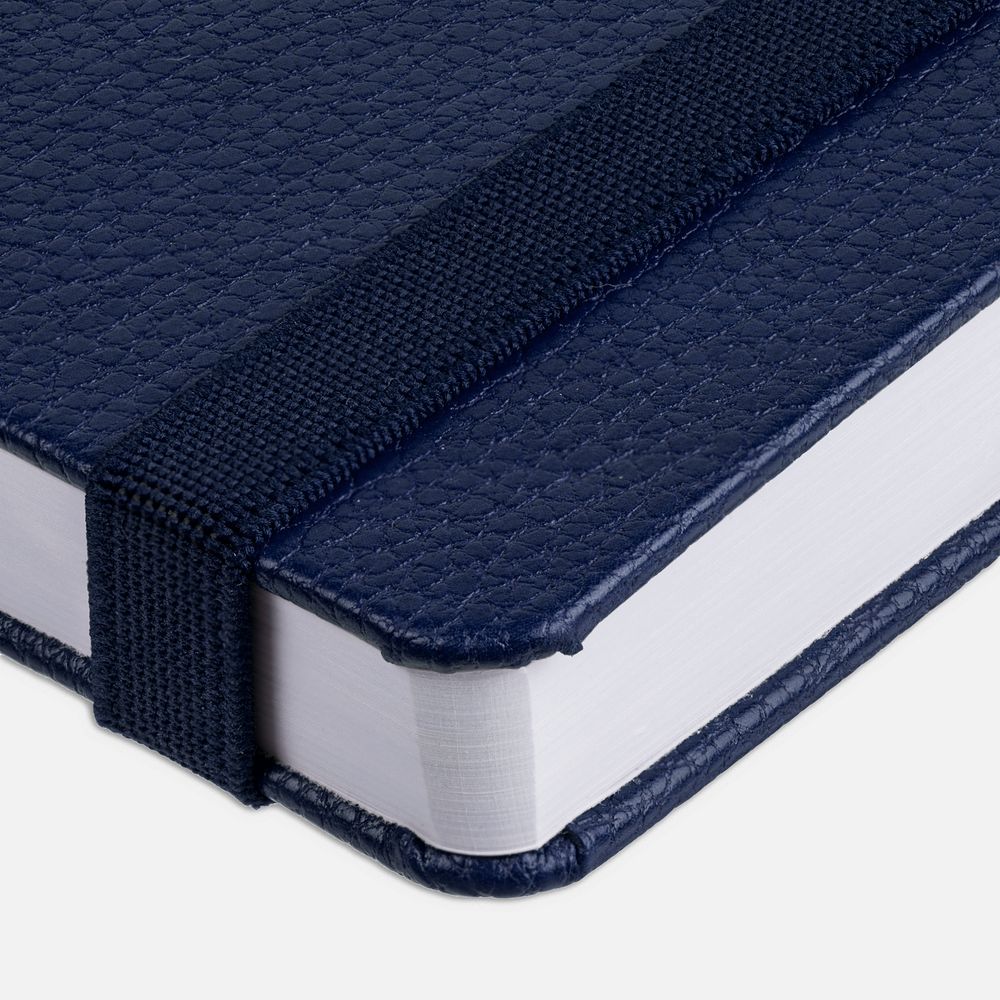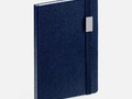 Зауженный ежедневник с прямоугольным металлическим шильдом на резинке.