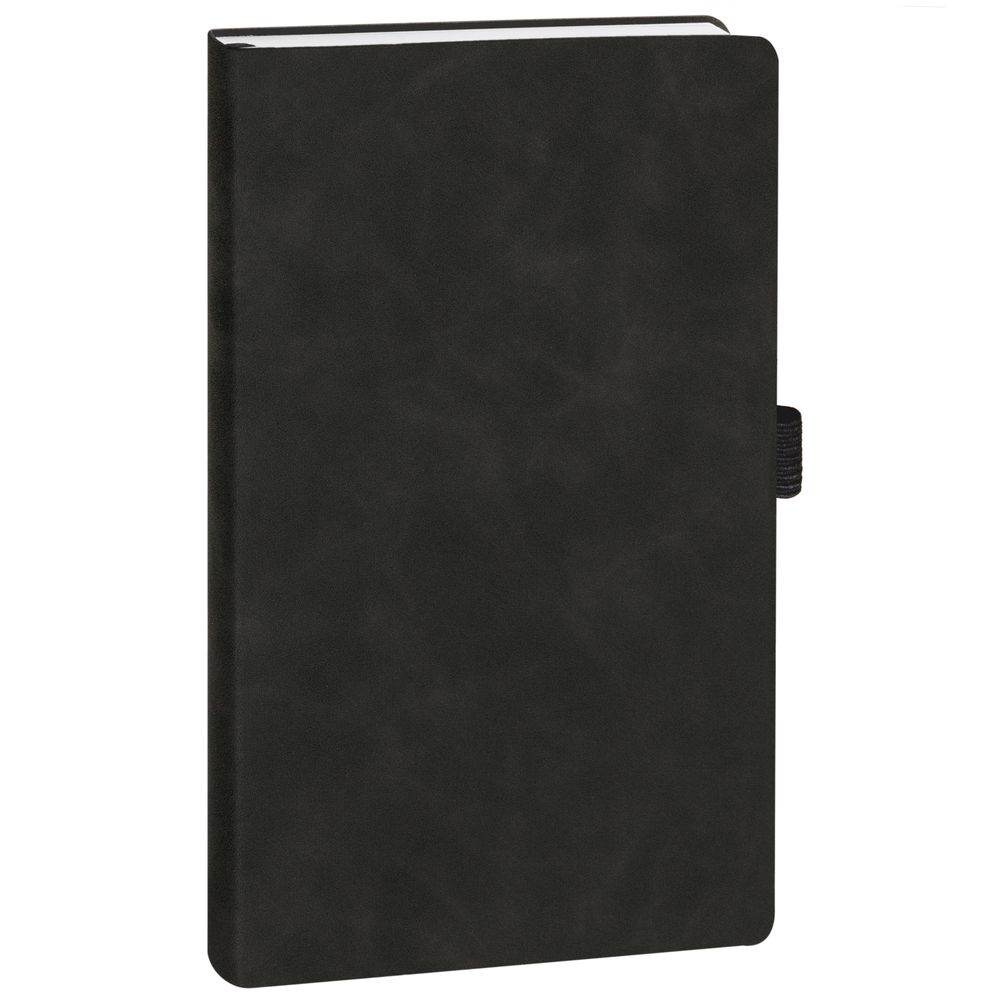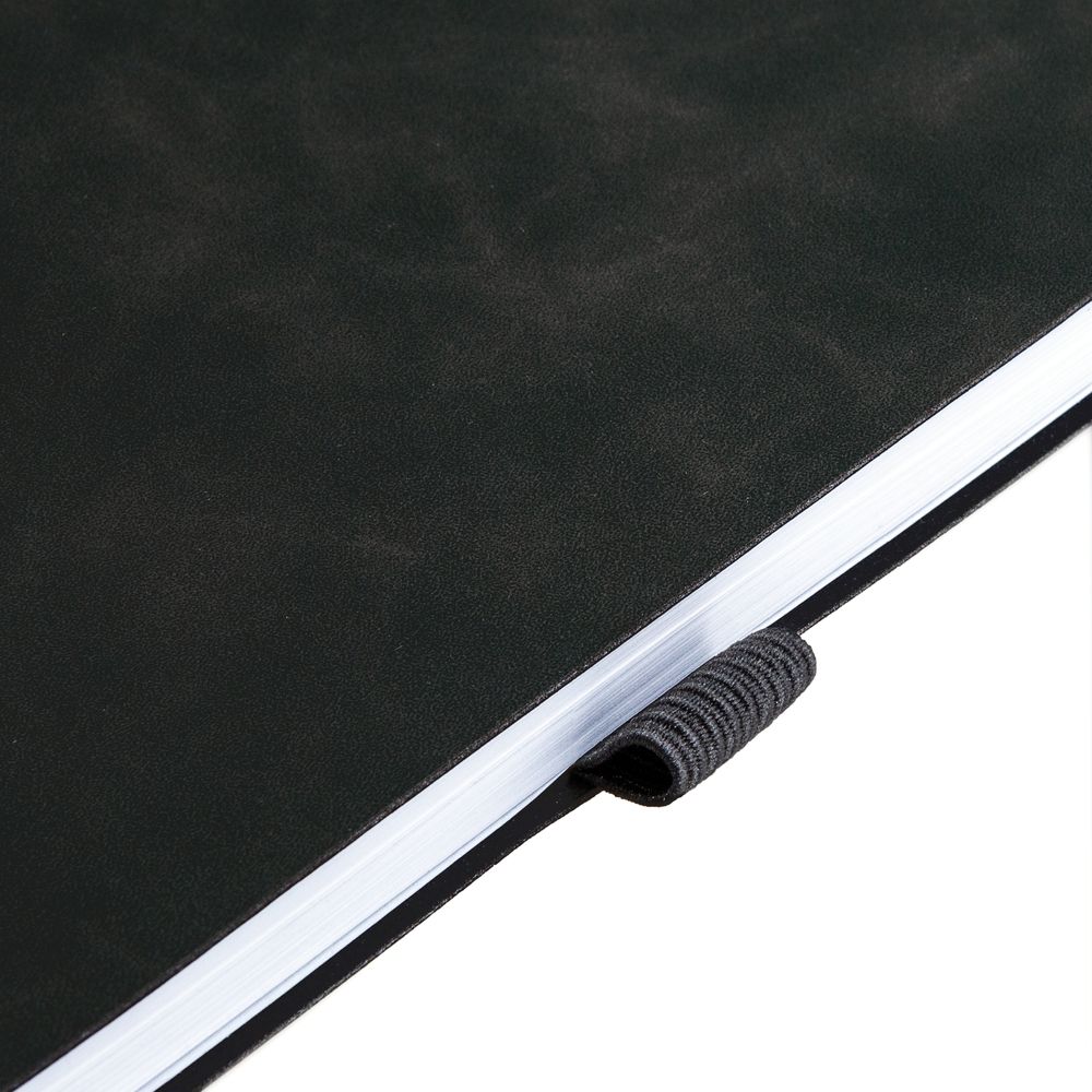 Ежедневник с гибкой обложкой, выполнен из материала Nubuck Touch, черный АА, дополнен ляссе и петлей-резинкой для ручки черного цвета.