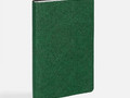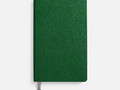 Ежедневник с гибкой обложкой, выполнен из материала Petrus, зеленый FF, дополнен серым ляссе с металлическим шильдиком.