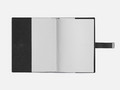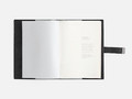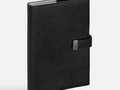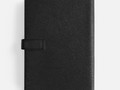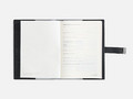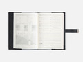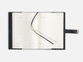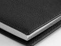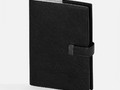 Ежедневник в мягком переплете со съемной обложкой, дополнен застежкой-хлястиком с металлическим шильдом на кнопке, двойным ляссе и капталом.