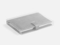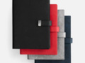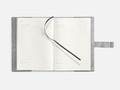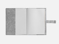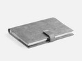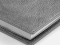 Ежедневник в мягком переплете со съемной обложкой, дополнен застежкой-хлястиком с металлическим шильдом на кнопке, двойным ляссе и капталом.