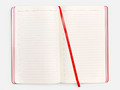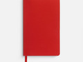 Ежедневник с гибкой обложкой, выполнен из материалов Soft Touch Ultra, красный РР, и Latte, красный (внутренняя часть обложки), дополнен ляссе в цвет обложки с металлическим шильдиком.