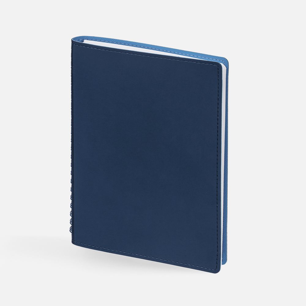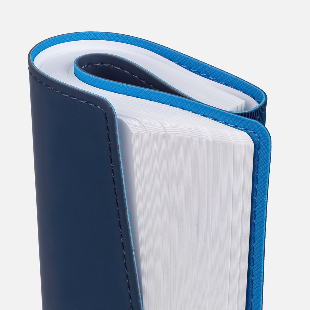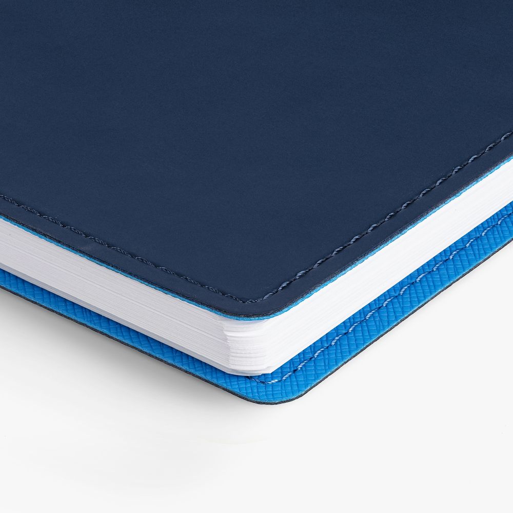 Ежедневник с гибкой обложкой, выполнен из материалов Soft Touch, синий и Nice Touch, голубой.