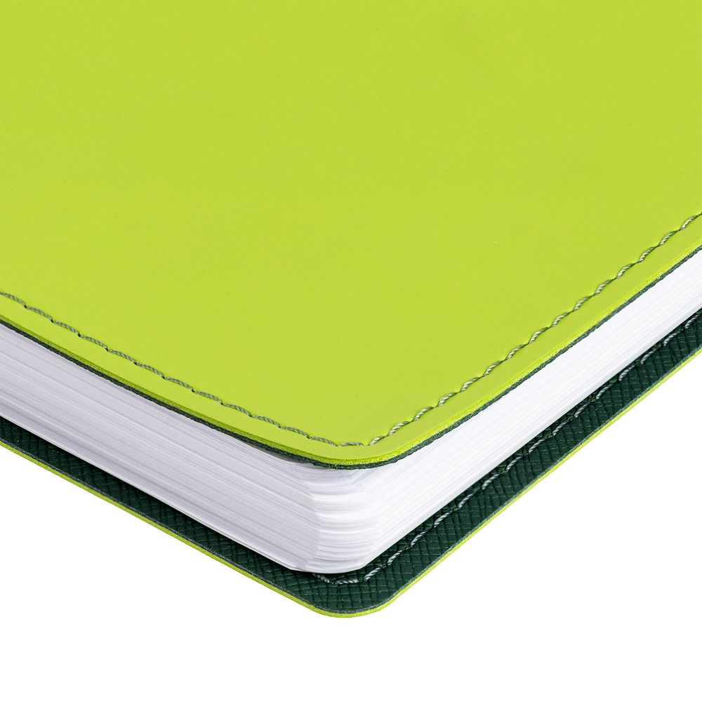 Ежедневник с гибкой обложкой, выполнен из материалов Soft Touch, светло-зеленый YY и Nice Touch, зеленый FF.
