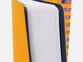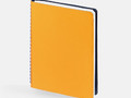 Ежедневник с гибкой обложкой, выполнен из материалов Soft Touch, желтый КК и Nice Touch, темно-синий ХХ.
