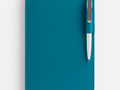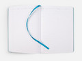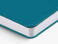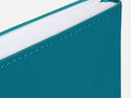 Ежедневник с гибкой обложкой из материала Soft Touch, цвет морской волны II и Latte, морская волна (внутренний материал), дополнен петелькой для ручки из покровного материала, капталом, ляссе и закрашенным срезом обложки в цвет материала.