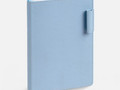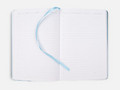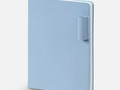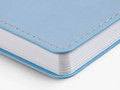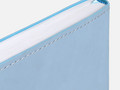Ежедневник с гибкой обложкой из материала Soft Touch, голубой и Latte, голубой (внутренний материал), дополнен петелькой для ручки из покровного материала, капталом, ляссе и закрашенным срезом обложки в цвет материала.