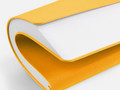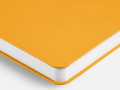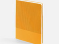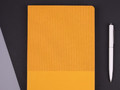 Ежедневник с гибкой обложкой выполнен из материала Soft Touch, желтый KK и Latte, желтый (внутренний материал); дополнен ляссе желтого цвета и фактурным тиснением обложки.