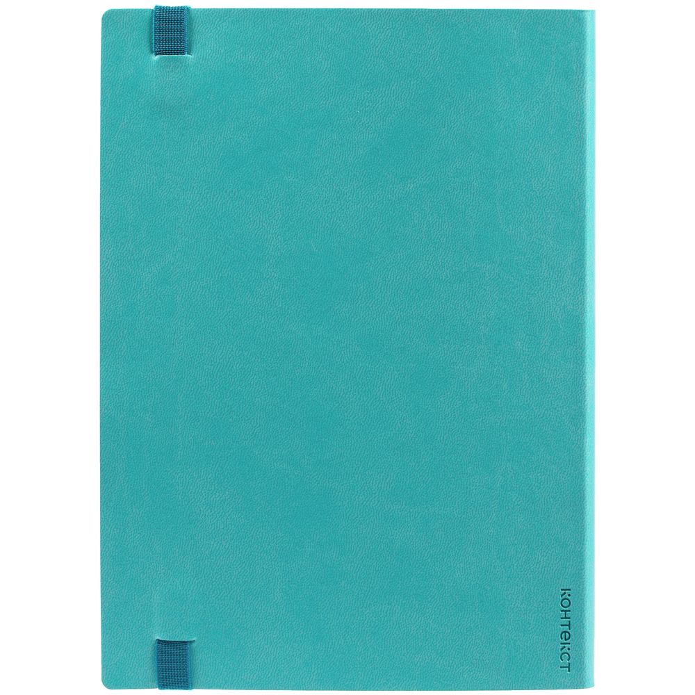 Ежедневник с гибкой обложкой выполнен из материала Latte, морская волна II, и дополнен резинкой шириной 1 см, капталом и ляссе в цвет обложки.