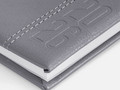 Еженедельник с твердой обложкой с поролоном из искусственной кожи, дополнен декоративной строчкой, капталом и ляссе в цвет.